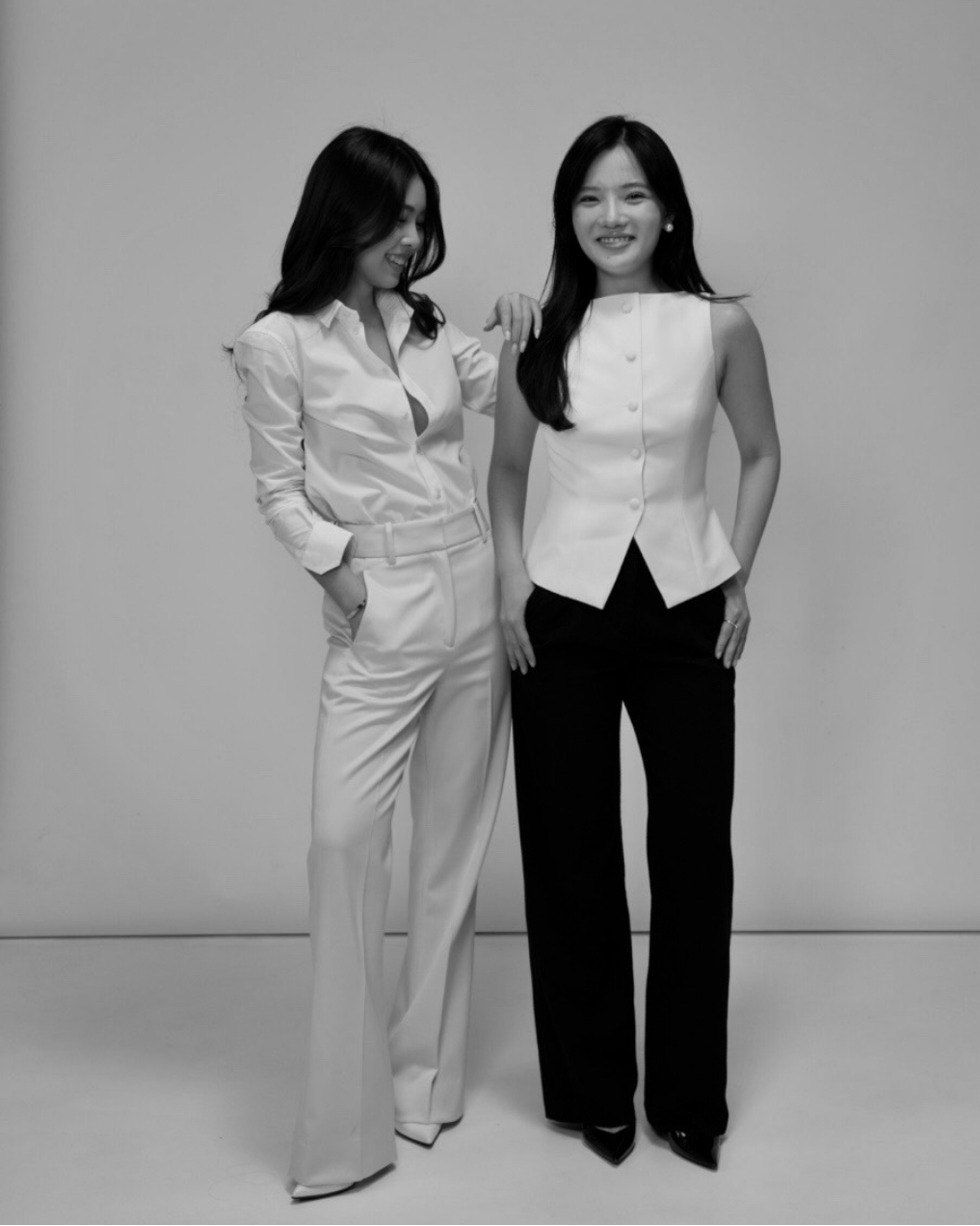 During her years in corporate banking, co-founder Jenny [right] learned that confidence begins with how you show up, yet she constantly struggled to find workwear reflecting both her strength and femininity. She partnered with her best friend Ploy [left], a lifelong fashion advocate who inherently understood the quiet power of dressing with intention, to bridge this gap.